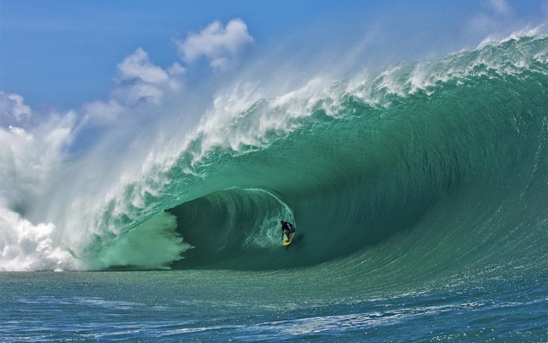 Die Wellen bei Teahupo'o sind legendär – extrem schwer, schnell und super hohl. Sie brechen meist als perfekte Barrels, die sich mit enormer Kraft über das flache Korallenriff ziehen.